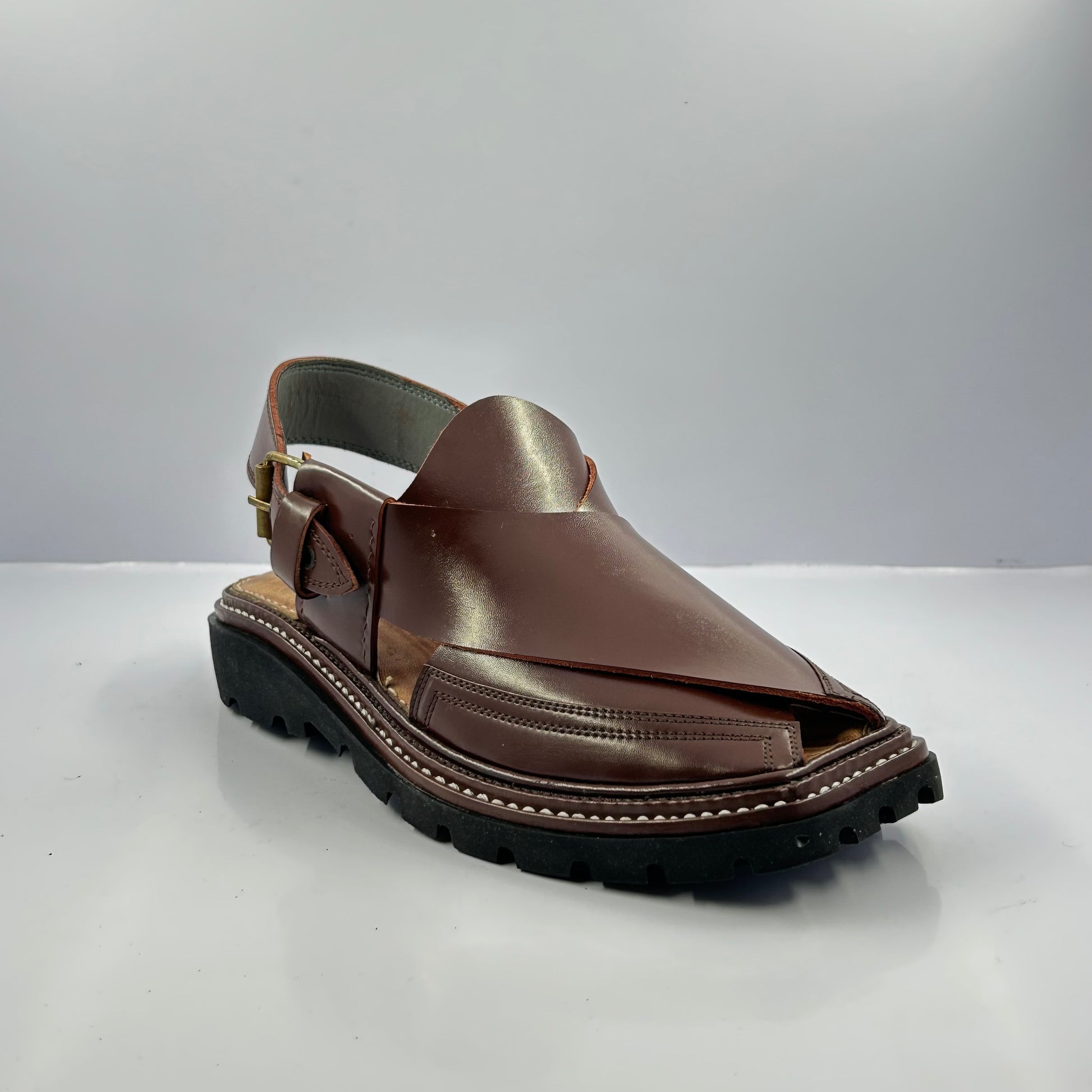 Elevate your traditional attire with our signature Vibram article. Handcrafted from 100% genuine premium leather, these Peshawari chappals offer a perfect blend of heritage craftsmanship and modern comfort.